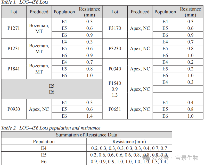 然而,上述的结论并不能用在VHP灭菌上。Apex实验室(Apex,NC)在生产货号为LOG-456的产品时发现,芽孢在载体上的抗性会随着芽孢数的增加或减少而产生改变。LOG-456产品共包含三种过氧化氢BI,它们分别接种了104/105/106的芽孢,并且被密封在独立的包装里。表1和表2显示了在Bozeman, MT以及 Apex,NC实验室里生产的LOG-456产品的D值(共9个批次)。从表中可以发现,随着芽孢数的减少,BI的D值也会降低。出现这种现象的原因是:由于VHP杀灭芽孢不是一个渗透过程,因此芽孢在载体上的位置越紧密,过氧化氢对芽孢的直接接触就越少。随着芽孢浓度的增加,芽孢之间互相紧挨的可能性就越大,也就导致了VHP更难以接触到芽孢表面。