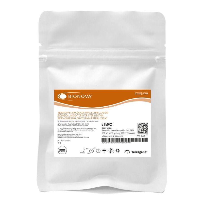 专门设计的Bionova®BT50孢子条封装包可用于监测蒸汽121°C-135°C(蒸汽)和甲醛(甲醛)灭菌过程。 孢子条应在Bionova®MC20-2或MC1020-2生长培养基试管中或在适当的生长培养基中进行培养。 Geobacillus stearothermophilus ATCC® 7953 增长。