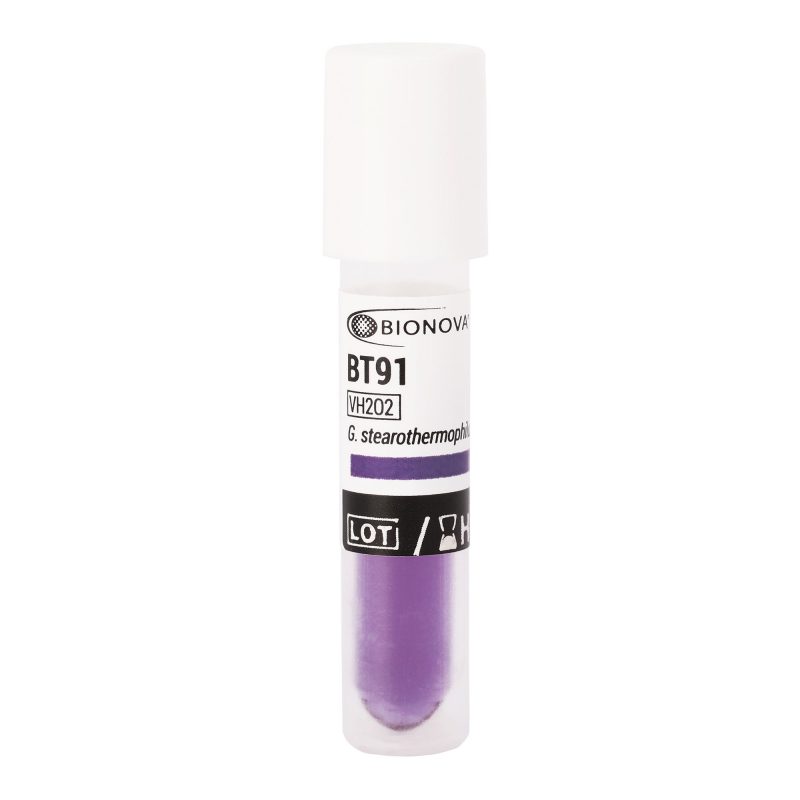 Bionova® BT91 生物指示剂是专用于监测等离子体或汽化过氧化氢灭菌过程。如果灭菌过程失败,指示剂内部培养基在 55-62 ºC 培养后由紫色变为黄色,说明存在活的嗜热脂肪地芽孢杆菌孢子。